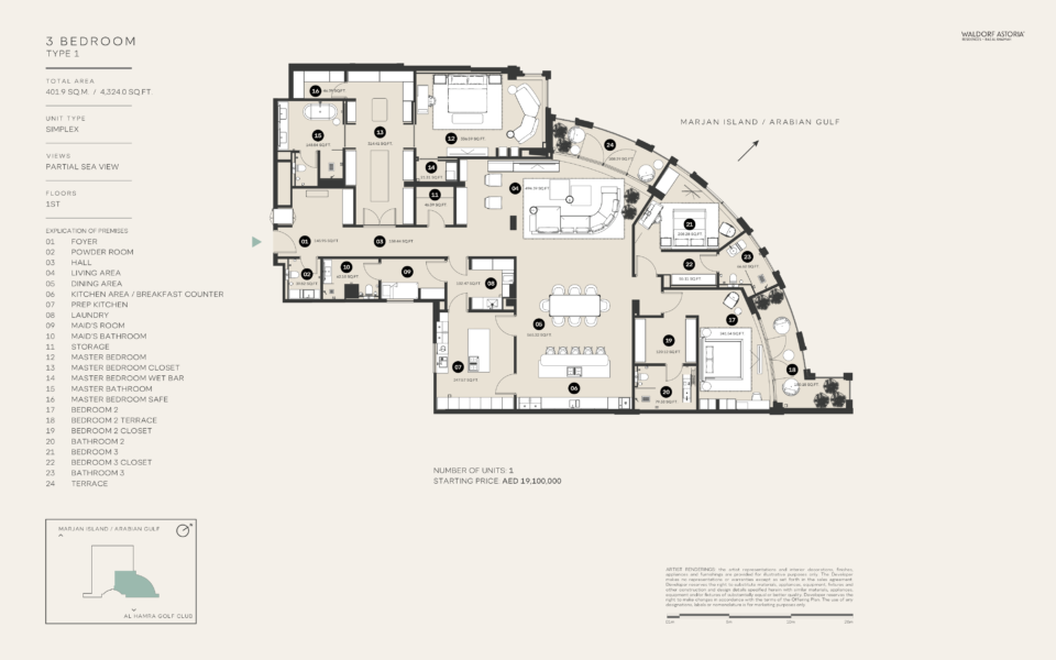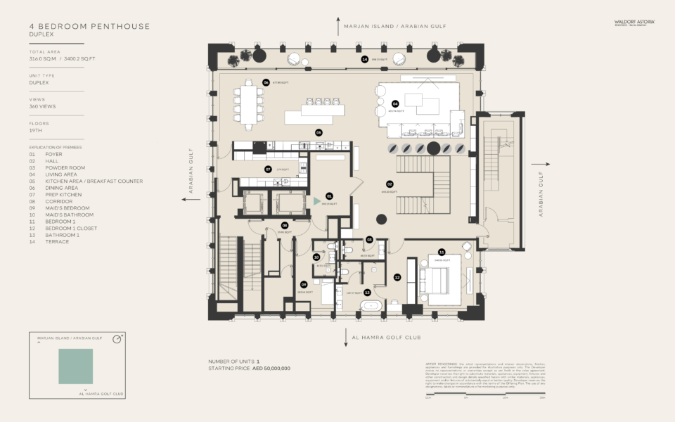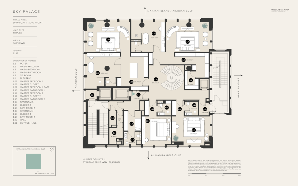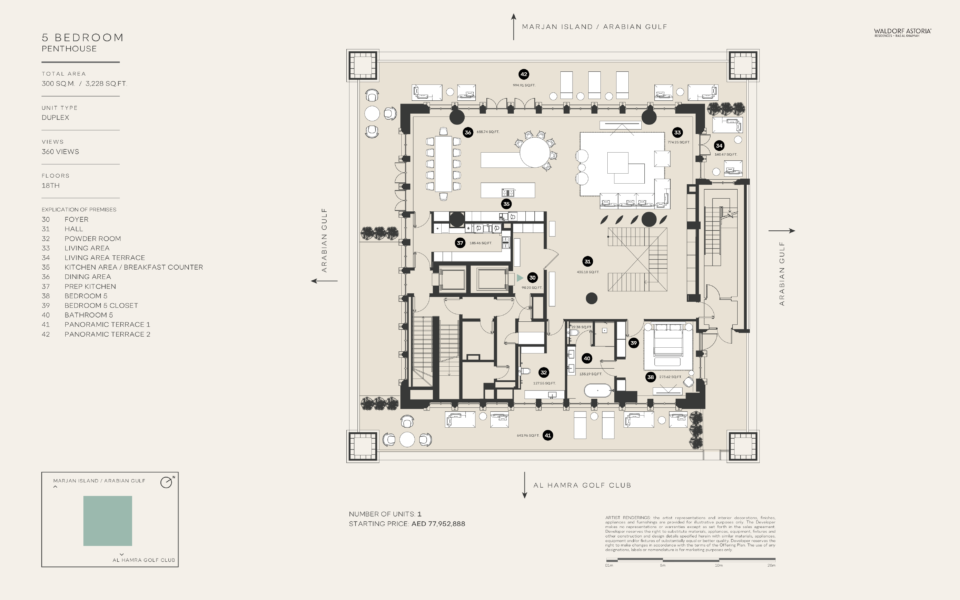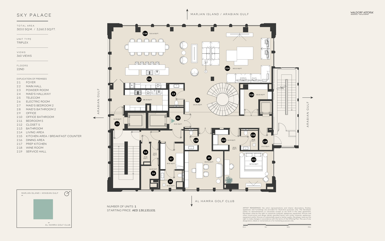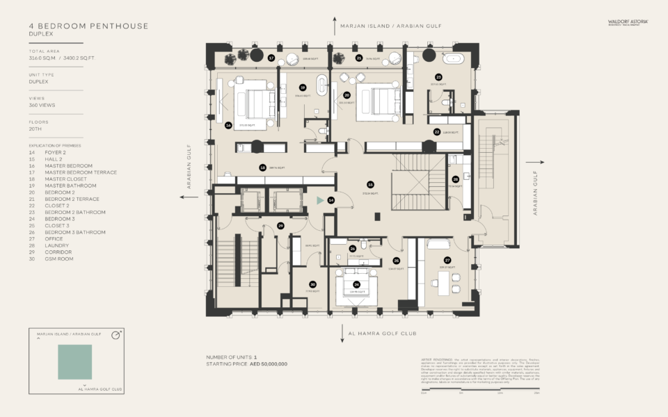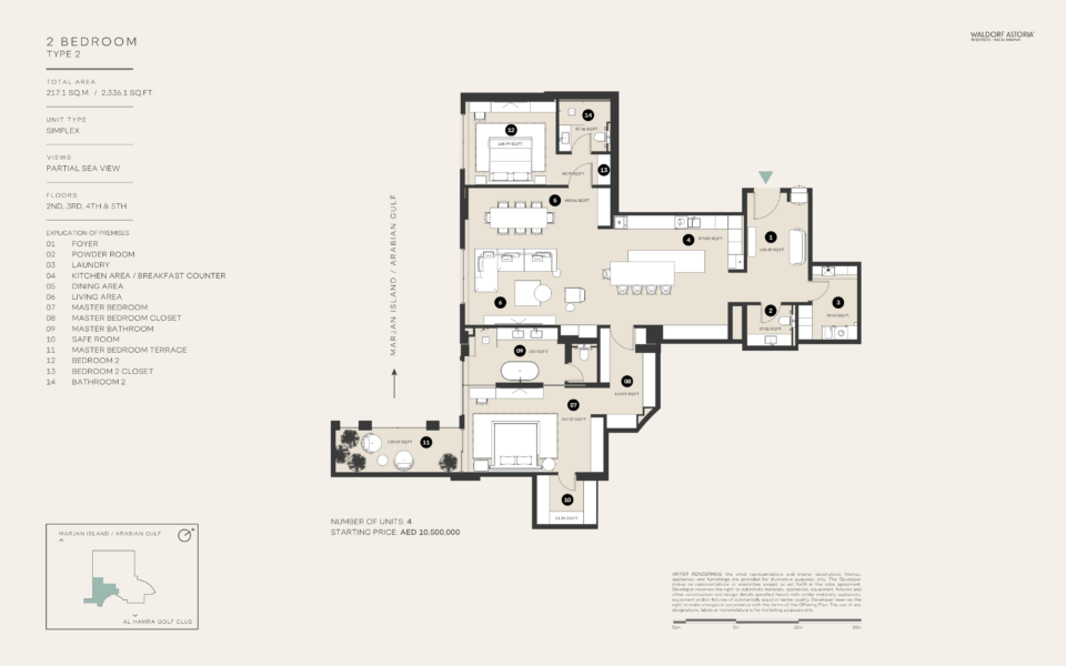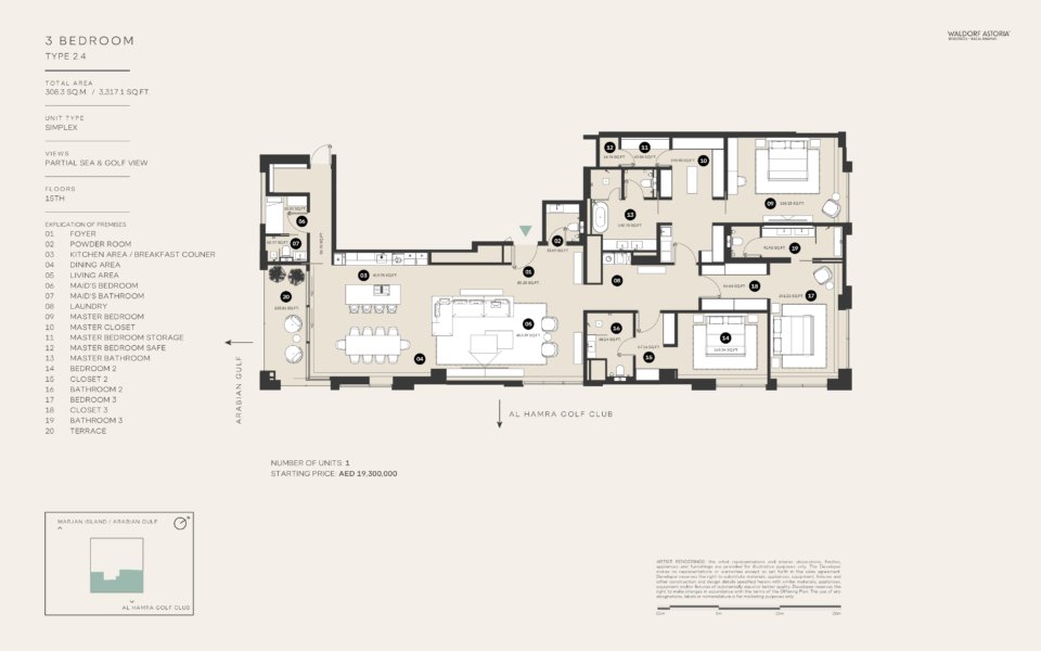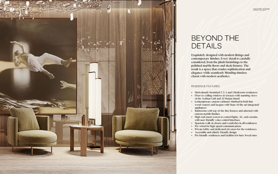 Découvrez Waldorf Astoria Residences, une adresse prestigieuse qui incarne l’élégance et le raffinement au sein du somptueux cadre de Ras Al Khaimah. Entre plages immaculées, terrains de golf de classe mondiale et une vue imprenable sur l’île d’Al Marjan, ces résidences offrent une expérience de vie inégalée.