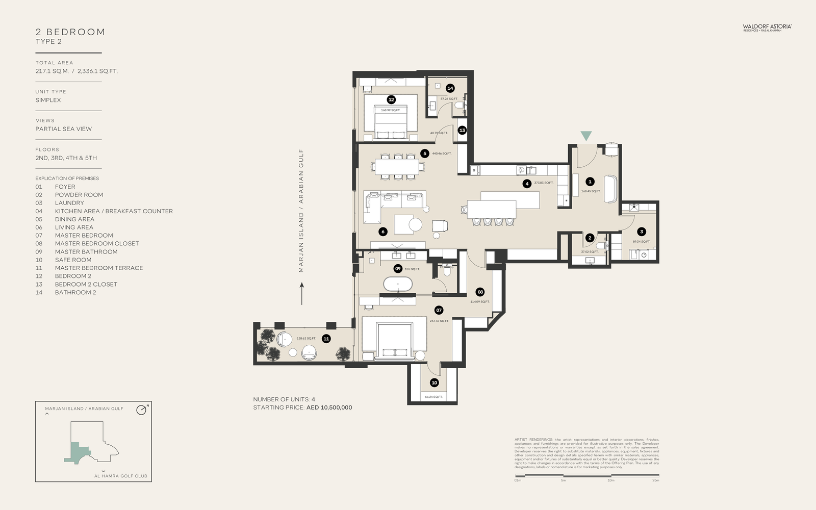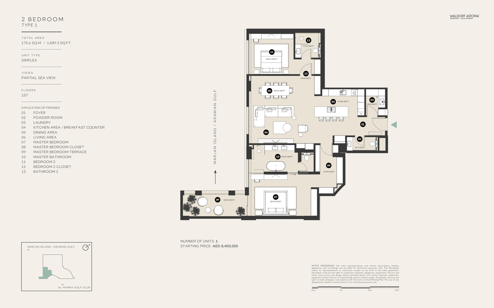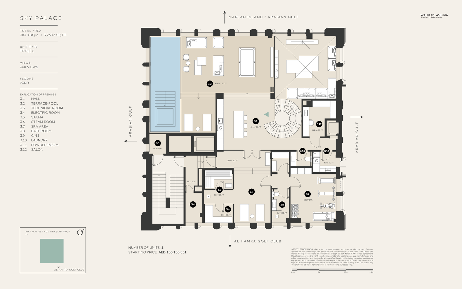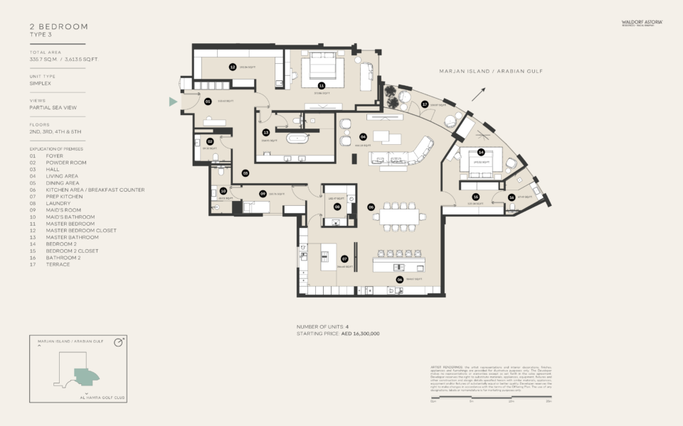 - Situé au bord du Golfe Arabique, à proximité immédiate du Al Hamra Golf Club et du Royal Yacht Club.