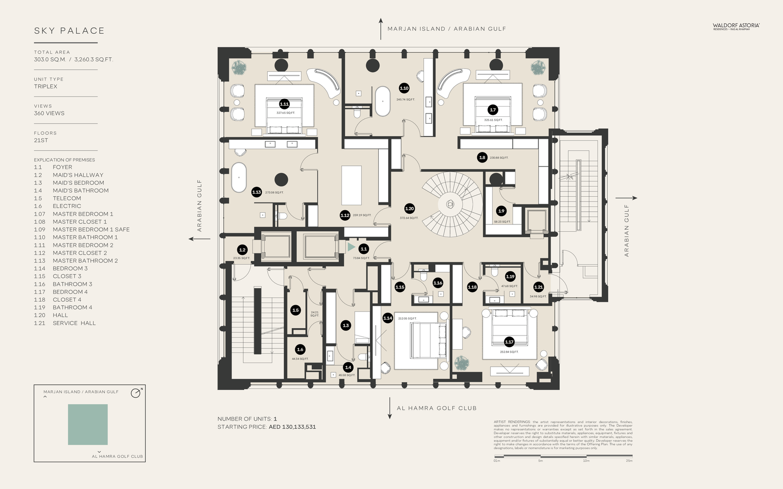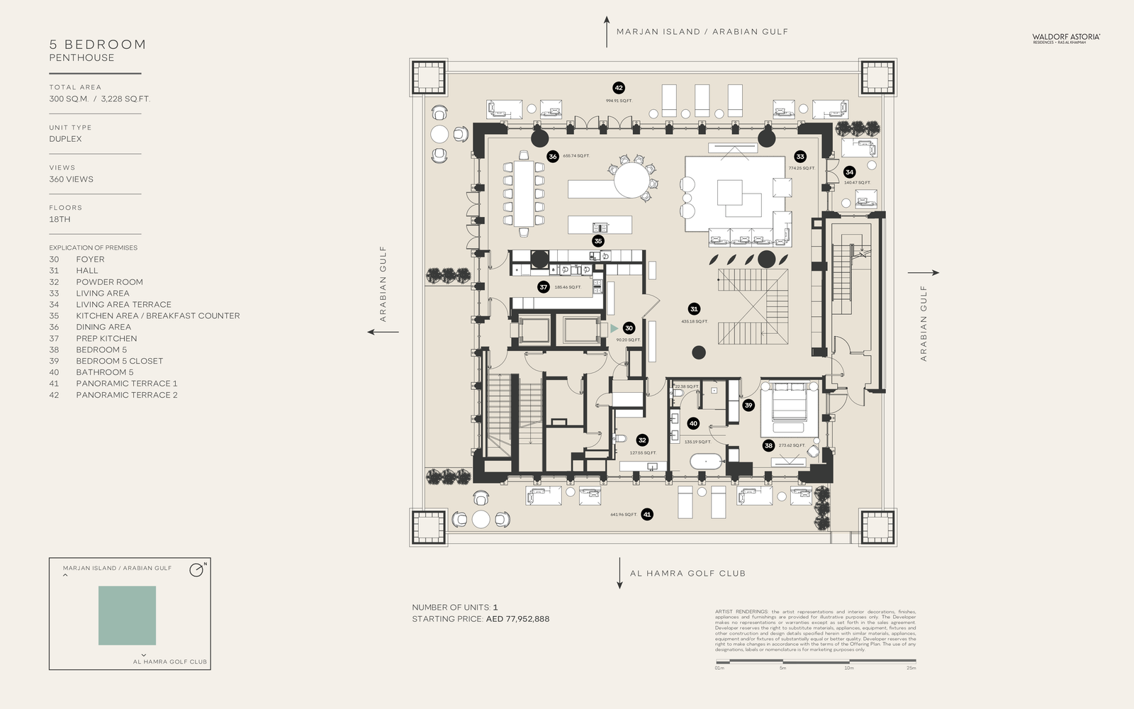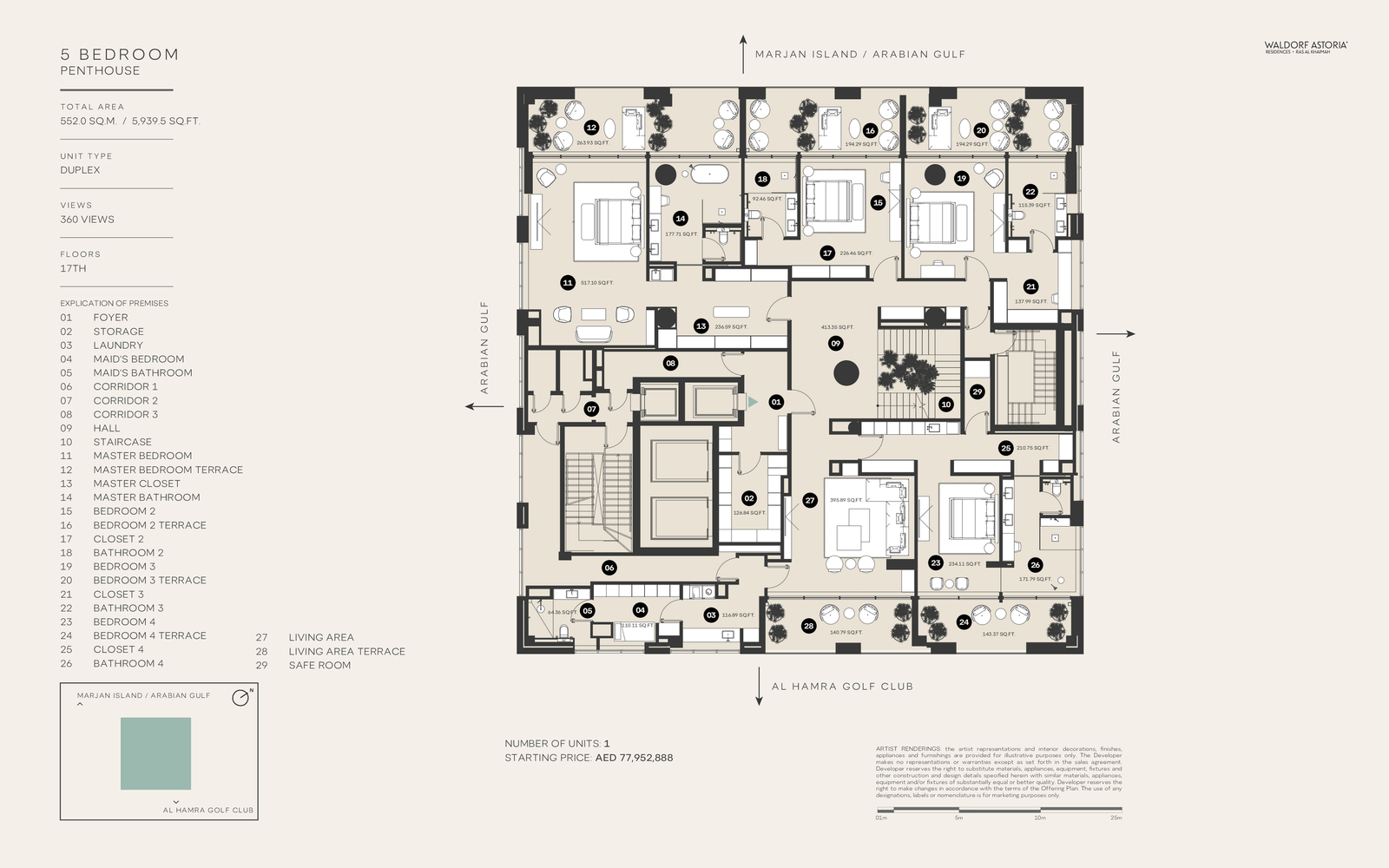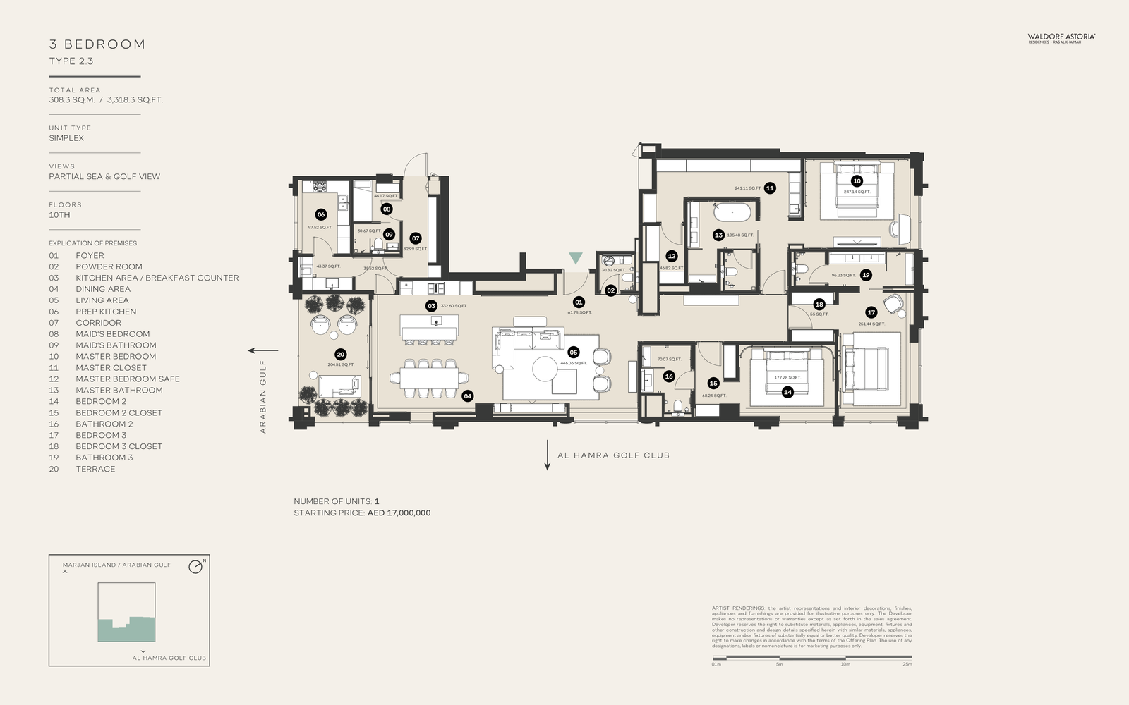 - Situé au bord du Golfe Arabique, à proximité immédiate du Al Hamra Golf Club et du Royal Yacht Club.