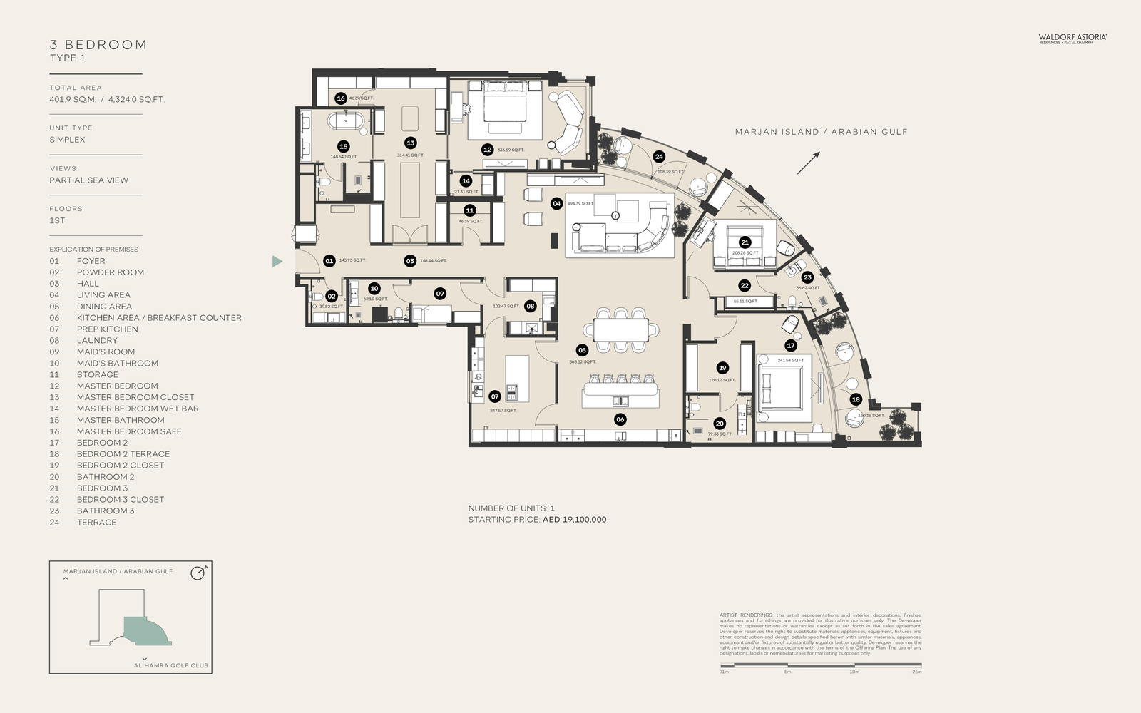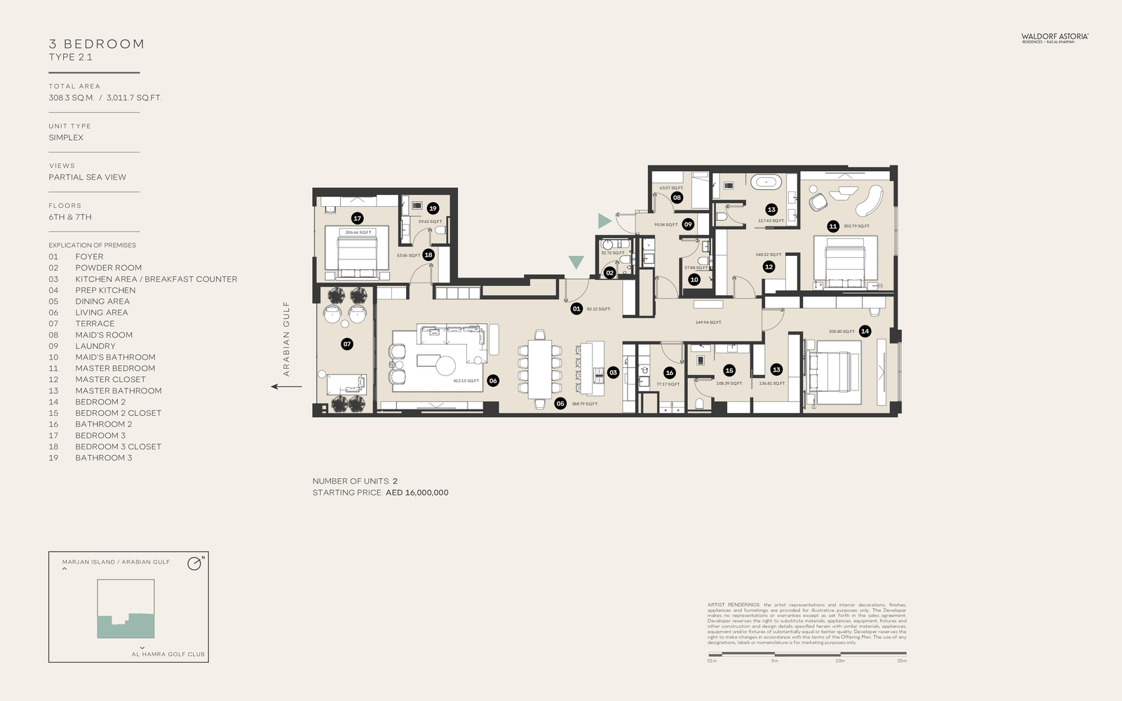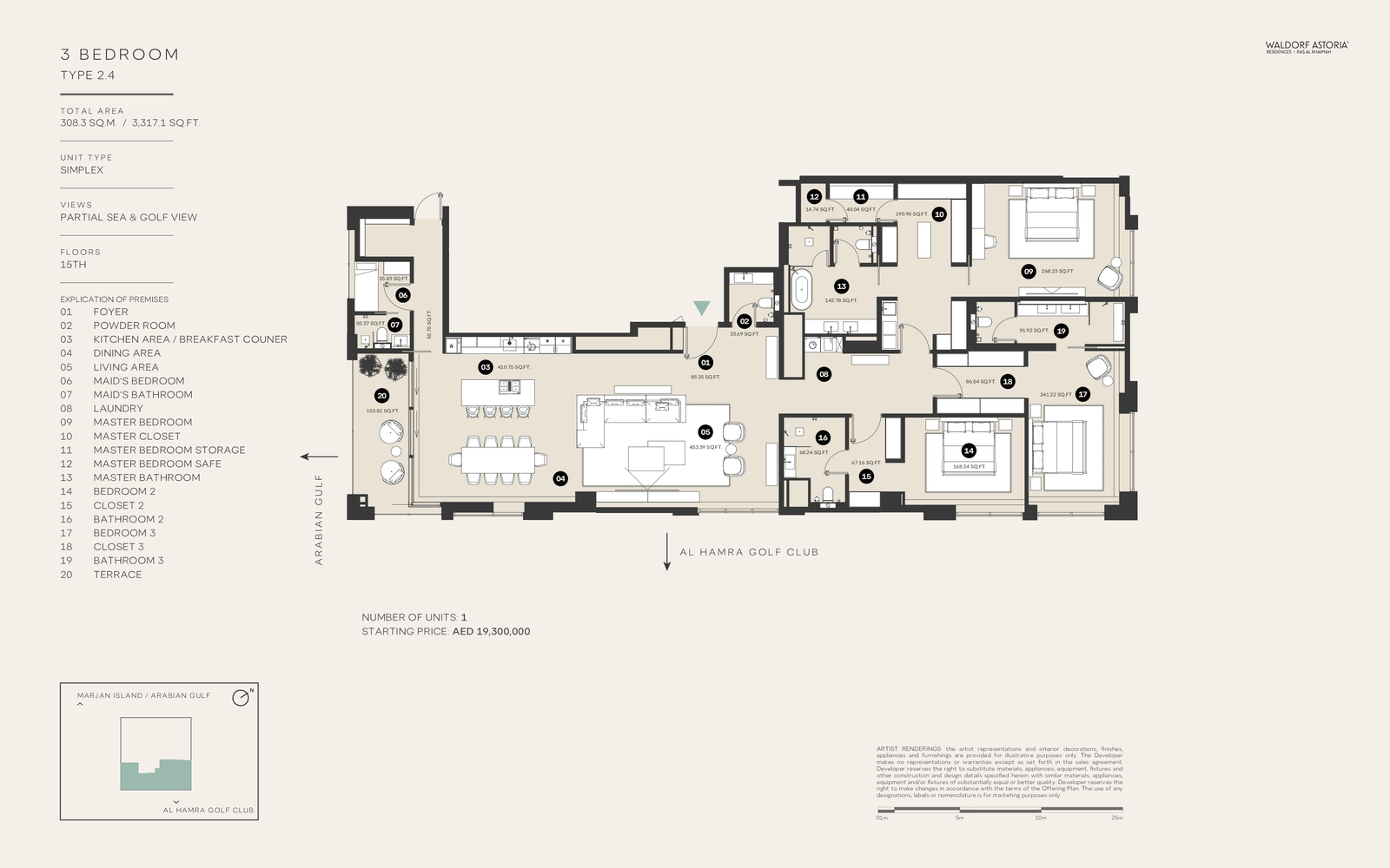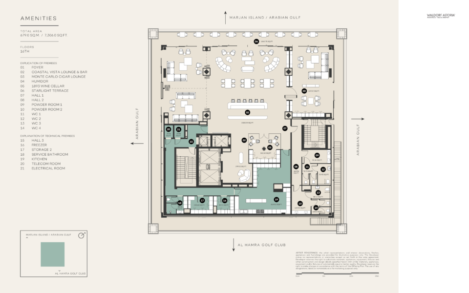 - Situé au bord du Golfe Arabique, à proximité immédiate du Al Hamra Golf Club et du Royal Yacht Club.
