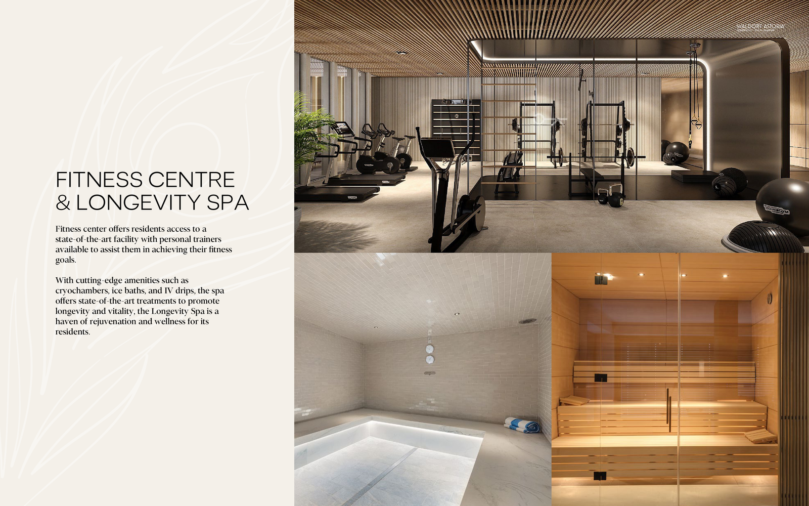 - Piscines privées et collectives, spa de bien-être avec cryothérapie et traitements de luxe.